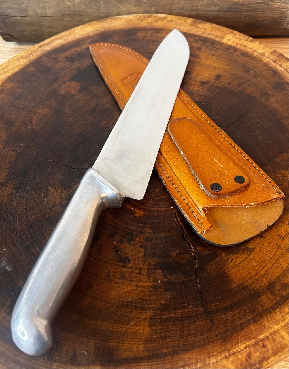 Faca para churrasco em aço inox, lâmina 2mm cabo em alumínio fundido, excelente fio de corte ideal para restaurantes e açougues.