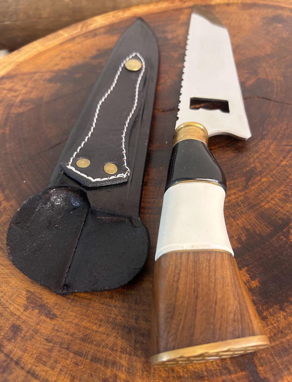 Faca Artesanal Picanhaeira abridor excelente fio de corte, cabo misto, dorso mosqueado. Ideal para churrasco, cozinha ou presente especial
