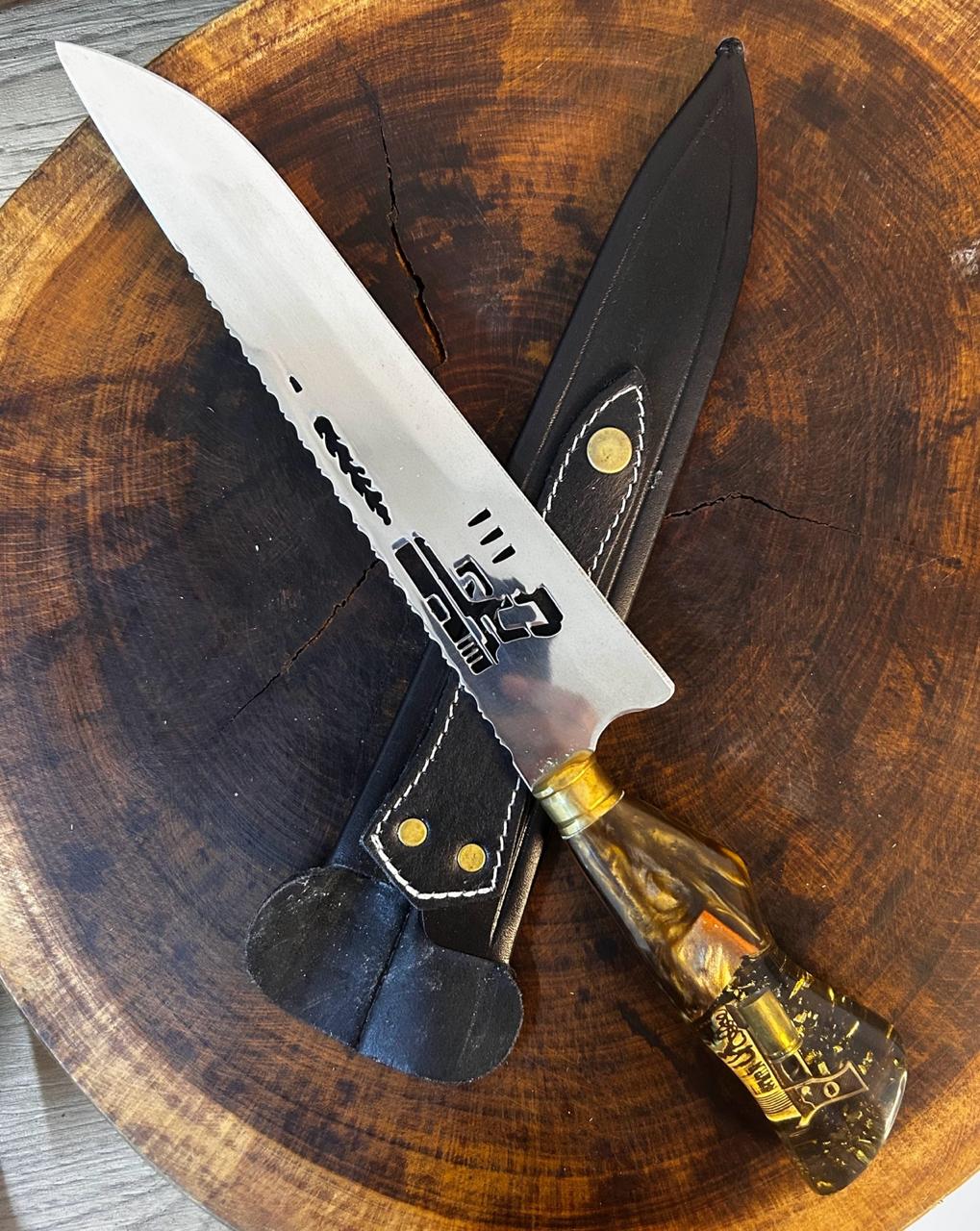Faca Artesanal Picanheira inox 10 polegadas , excelente fio de corte, cabo misto( resina e madeira), dorso mosqueado. Ideal para churrasco, cozinha ou presente especial. Produtos do Gaúcho — tradição e qualidade em cutelaria.